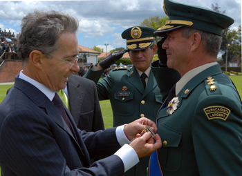 - El ex Presidente Álvaro Uribe condecorando a Gr. Mario Montoya Foto: web.presidencia.gov.co